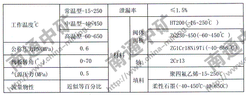 蝶閥的主要技術參數