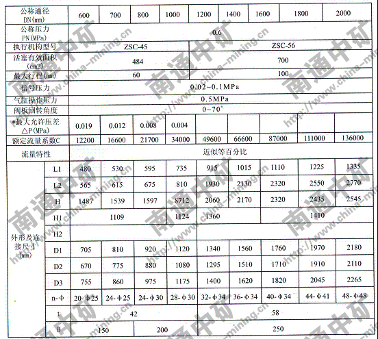 ZSCW-0.6k/b型氣動調節蝶閥外形尺寸: