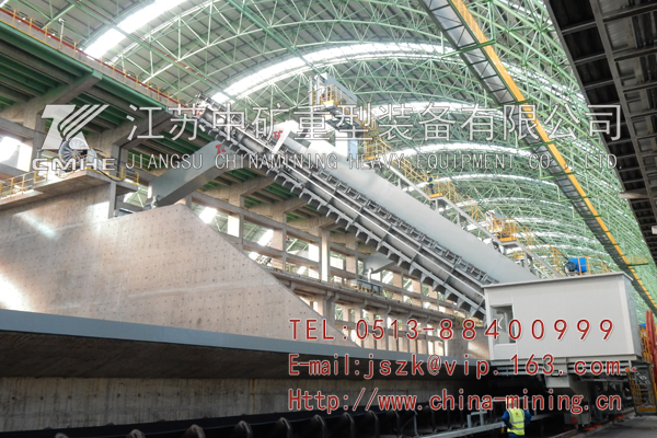 門式刮板取料機有全門式和半門式兩種,半門式刮板取料機一側置于擋墻上與天車堆料機進行配合成對布置使用,堆取料作業互不干擾、同時進行,提高了生產效率。