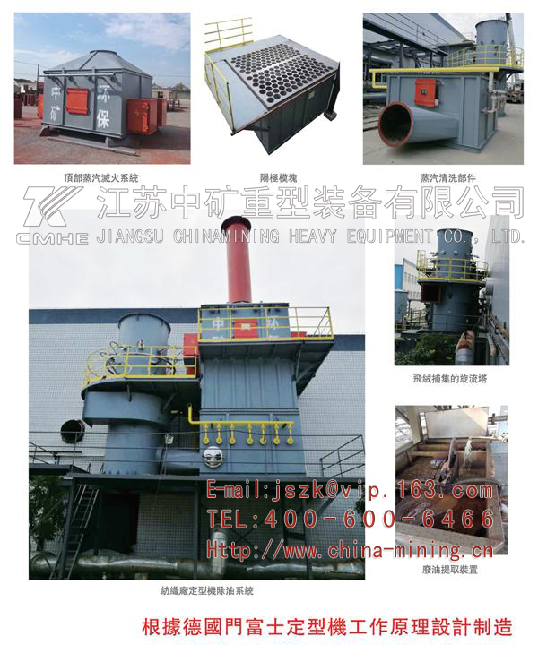 1、定型烘干機靜電出油系統工程適用于焦化、食品及紡織品的烘干定型除油。