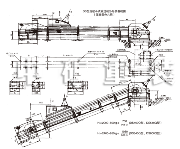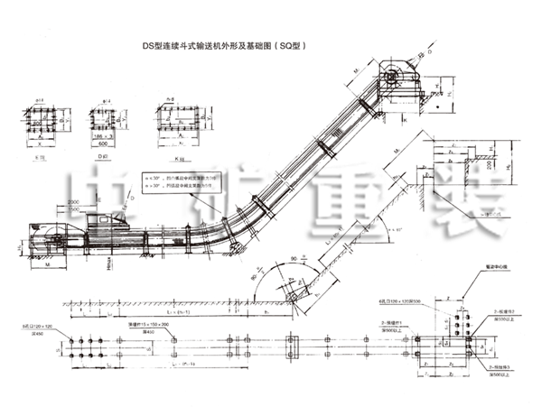 DS型連續(xù)式斗式輸送機外形及基礎(chǔ)圖(SQ型)