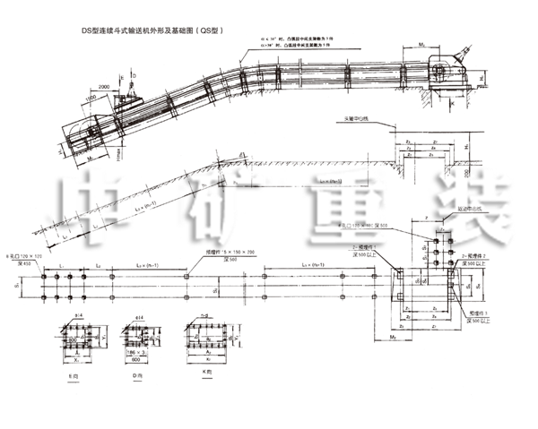DS型連續(xù)式斗式輸送機外形及基礎(chǔ)圖(QS型)