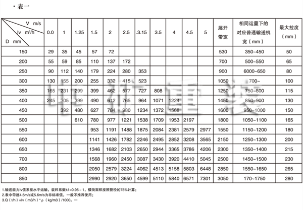 圓管帶式輸送機的輸送量,通常與帶寬是其管徑2.53倍的通用帶式輸送機相同。例如,一個管徑為300mm(12in)的圓管帶式輸送機,與帶寬800mm(30in)、托輥槽角20、卸料角20的通用帶式輸送機的輸送量相同,而這臺圓管帶式輸送機的支架只有635mm(25in)寬,通用帶式輸送機的支架需要1050mm(41in)寬。在輸送機安裝空間受限制的情況下,如隧道中,采用圓管帶式輸送機可設計較小的隧道橫斷面。